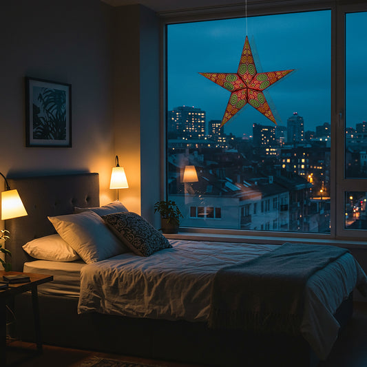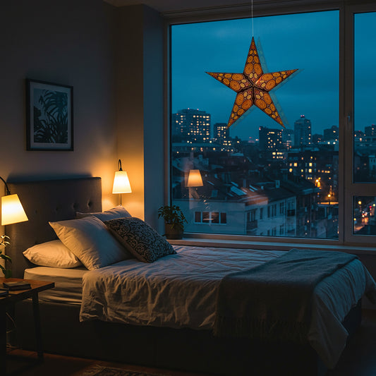 Hrim Star 9 Point 16" Gold w/ Gold Glitter