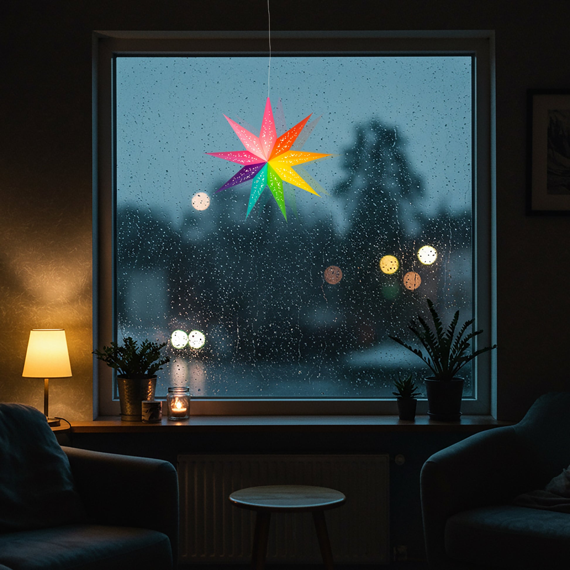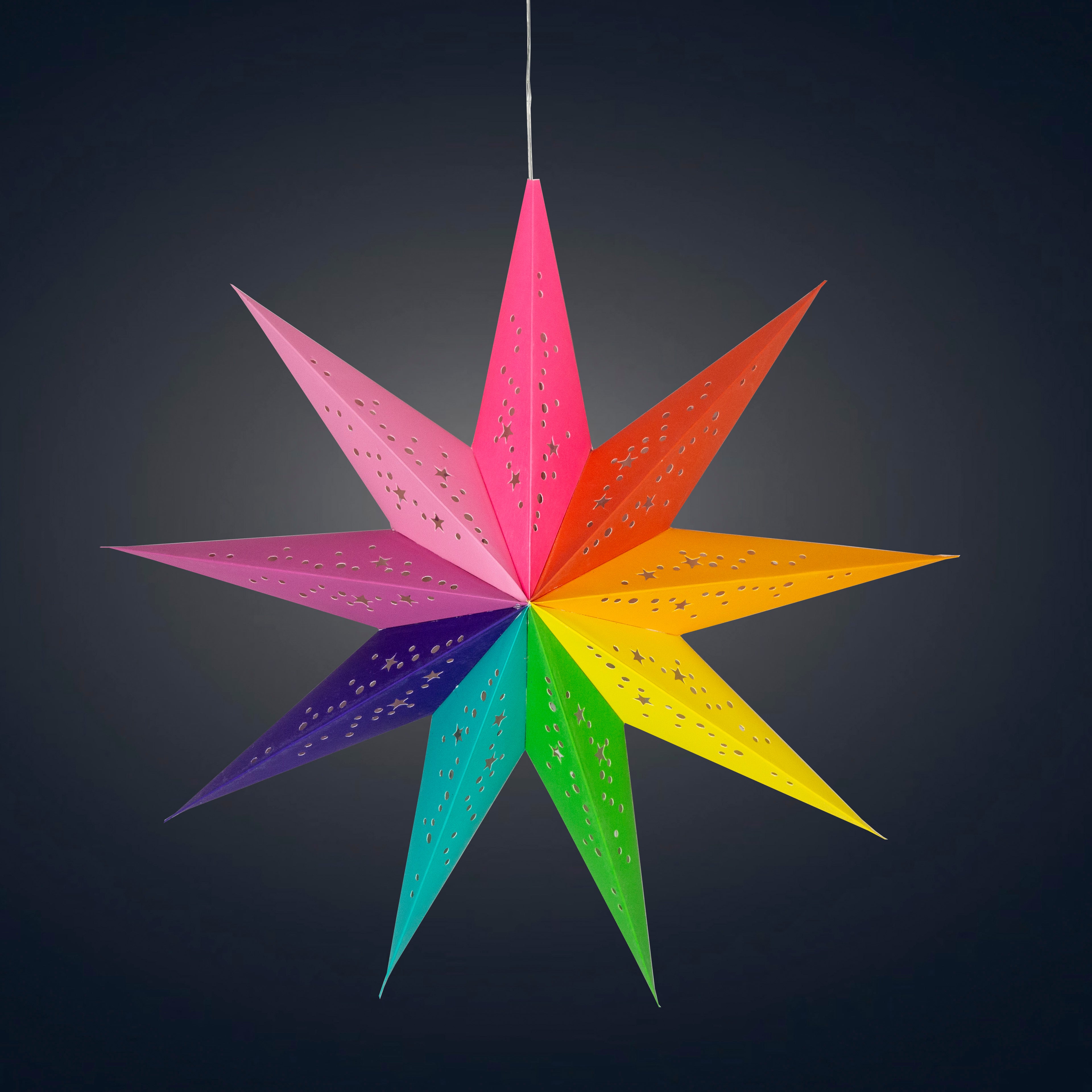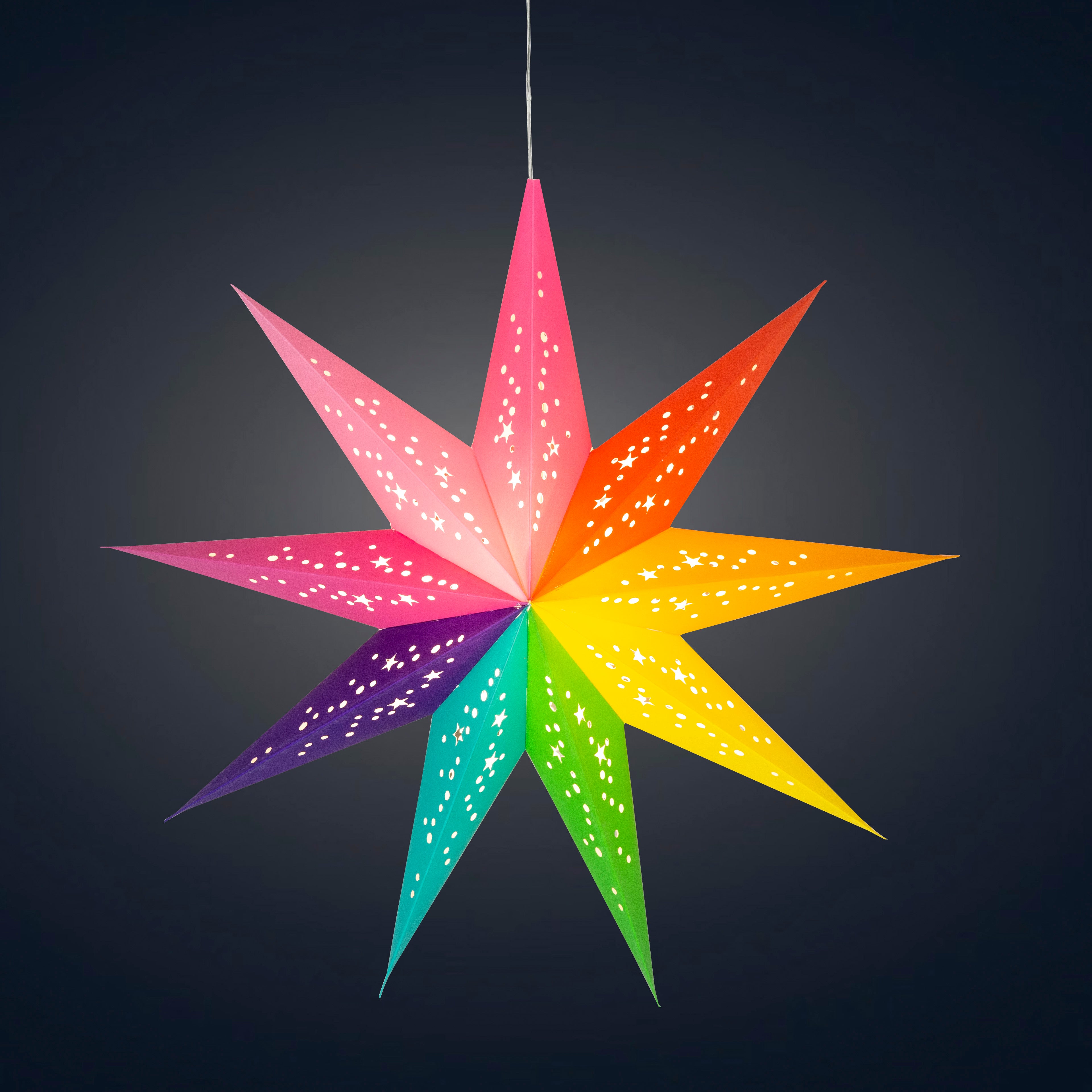 Artschatz Star Lights stand out from all the rest because our stars are the only ones that hang symmetrically with the tip pointing up, (they hang like a traditional “Protective” or “Luck” bringing star).