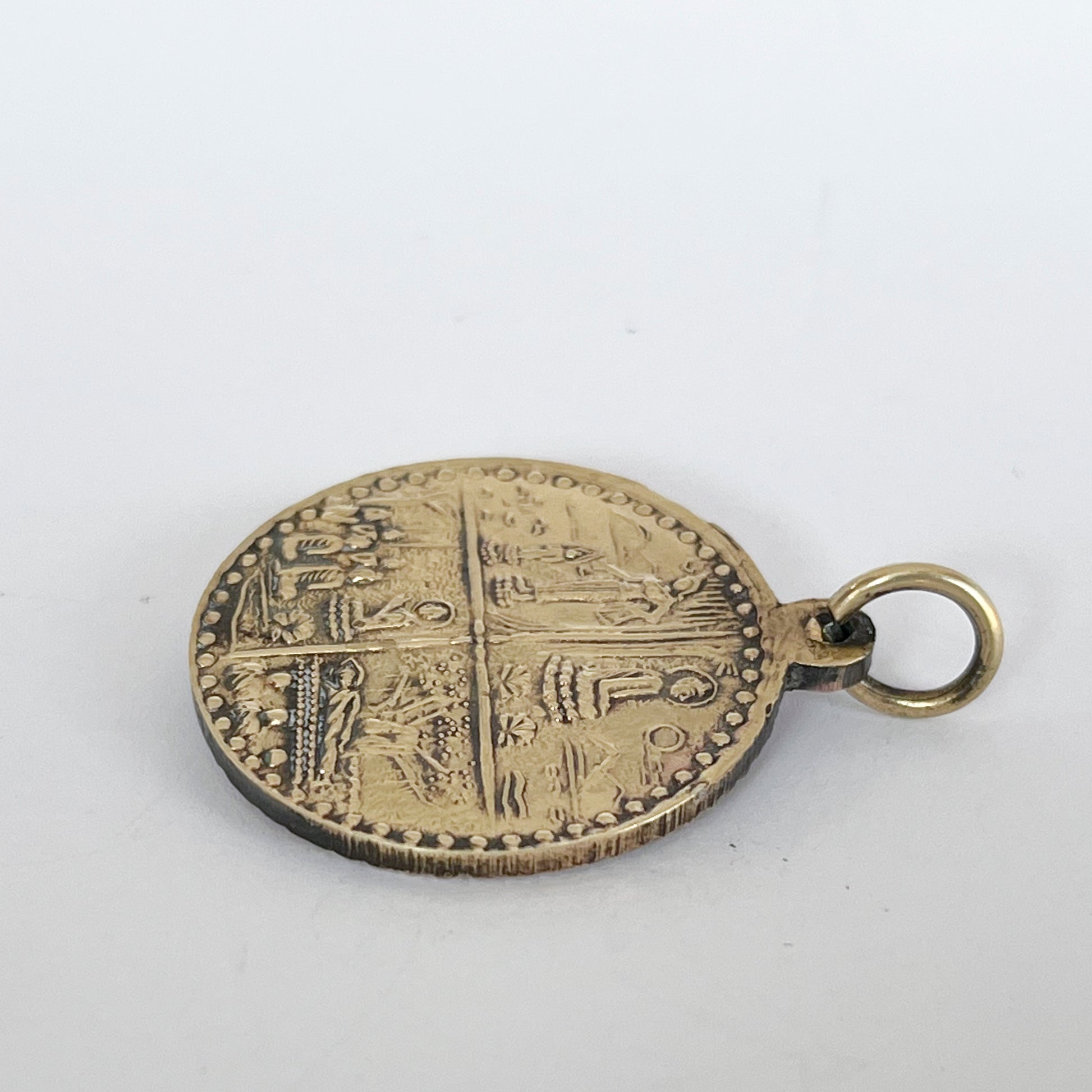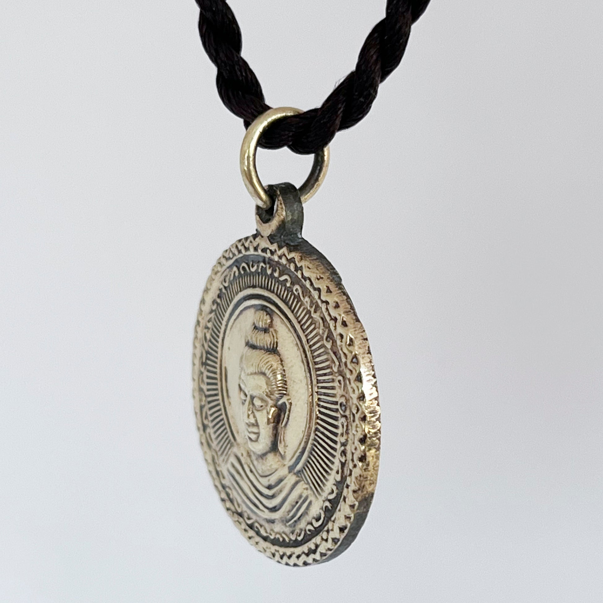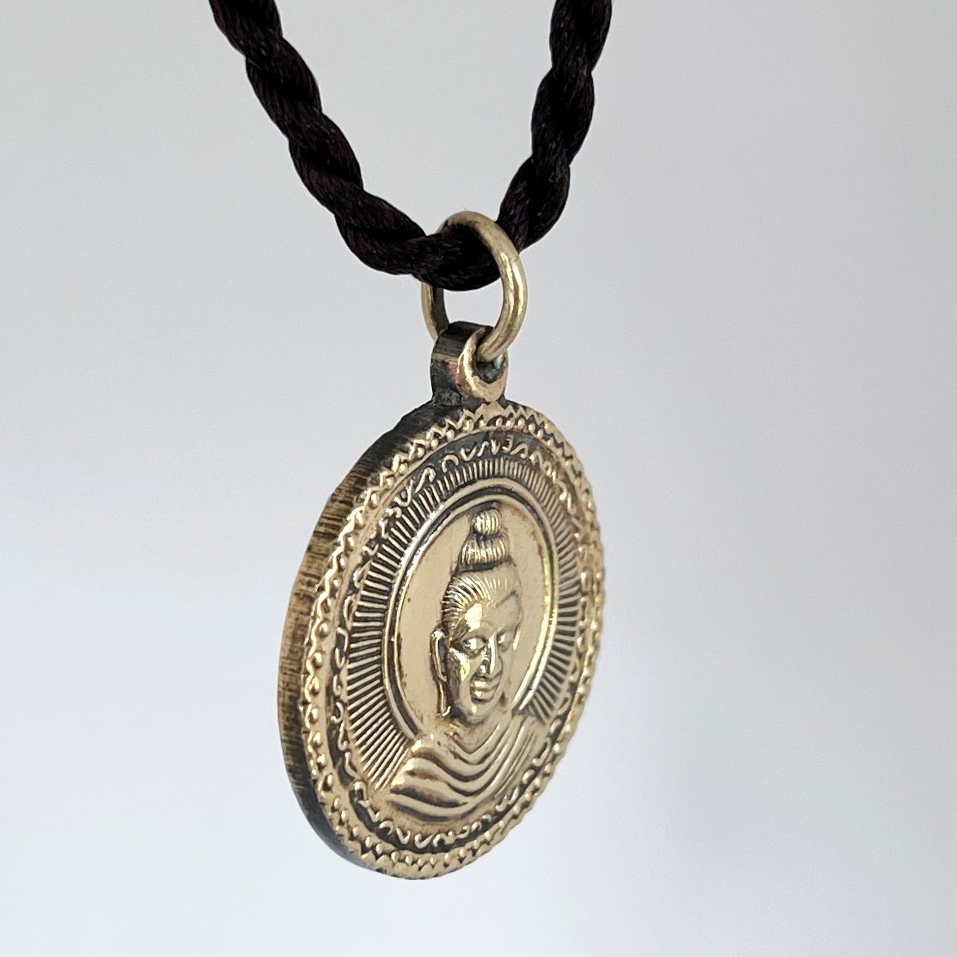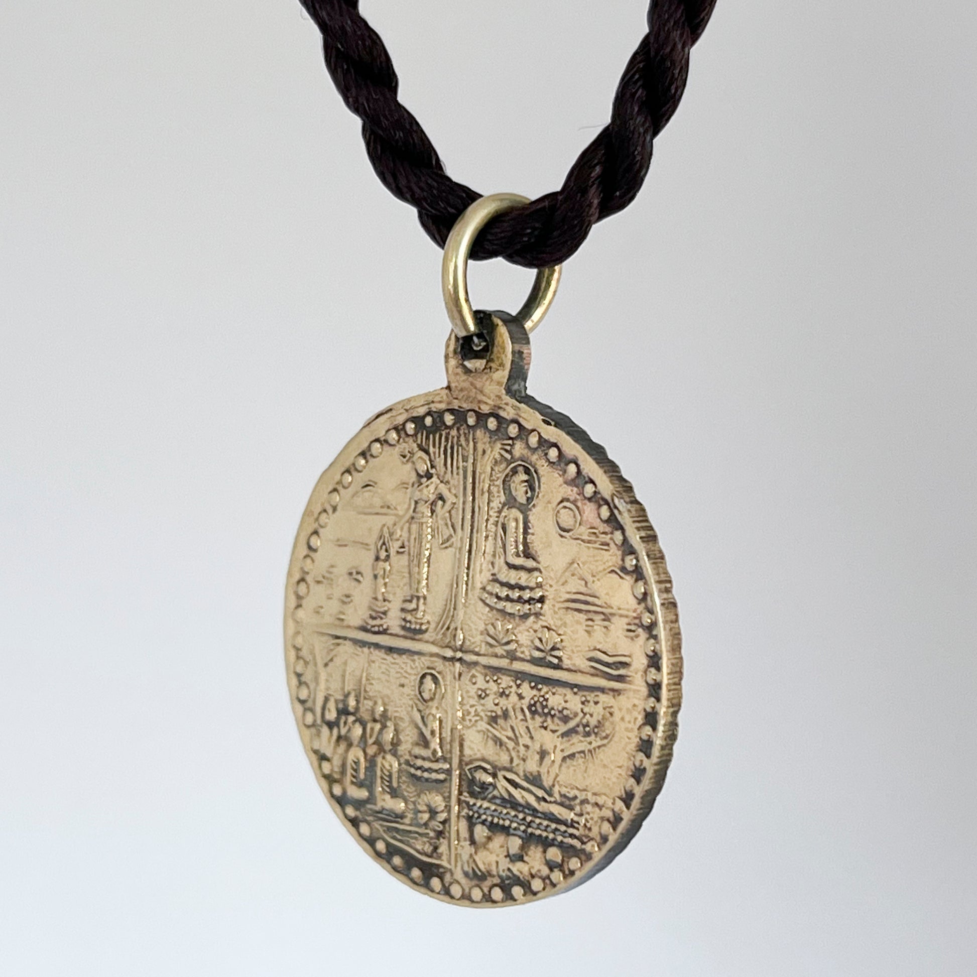 This Buddha brass pendant depicting the Four Noble Truths is a symbolic representation of one of the fundamental teachings of Buddhism.