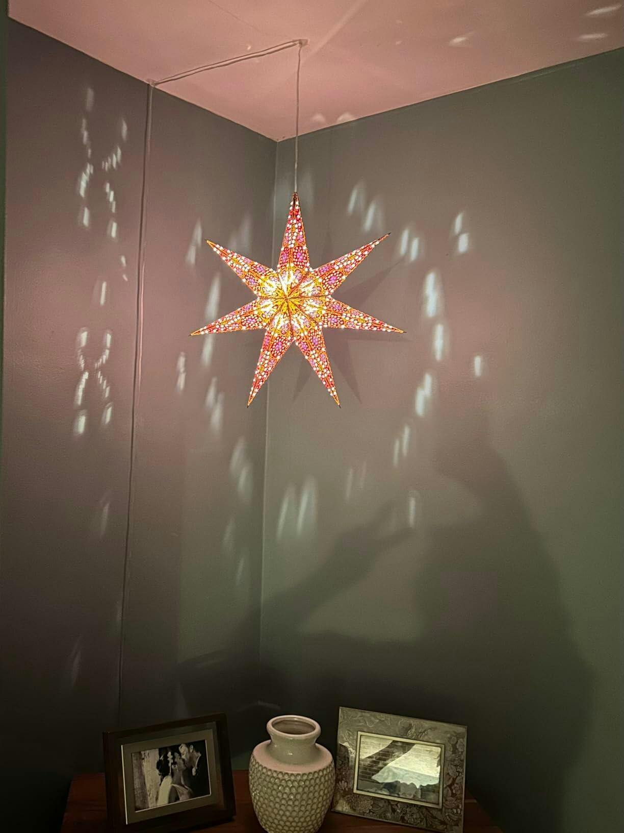 Artschatz Star Lights stand out from all the rest because our stars are the only ones that hang symmetrically with the tip pointing up, (they hang like a traditional “Protective” or “Luck” bringing star).