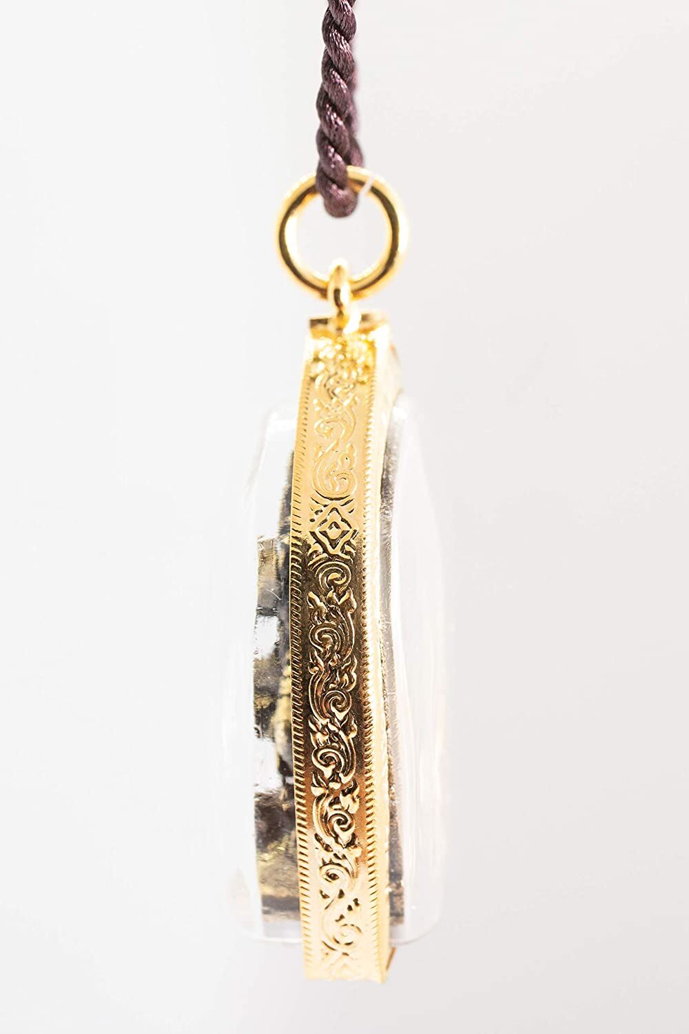 Material:Brass and Gold plated Metal Case Comes with a ≈ 24" inch brown fabric necklace