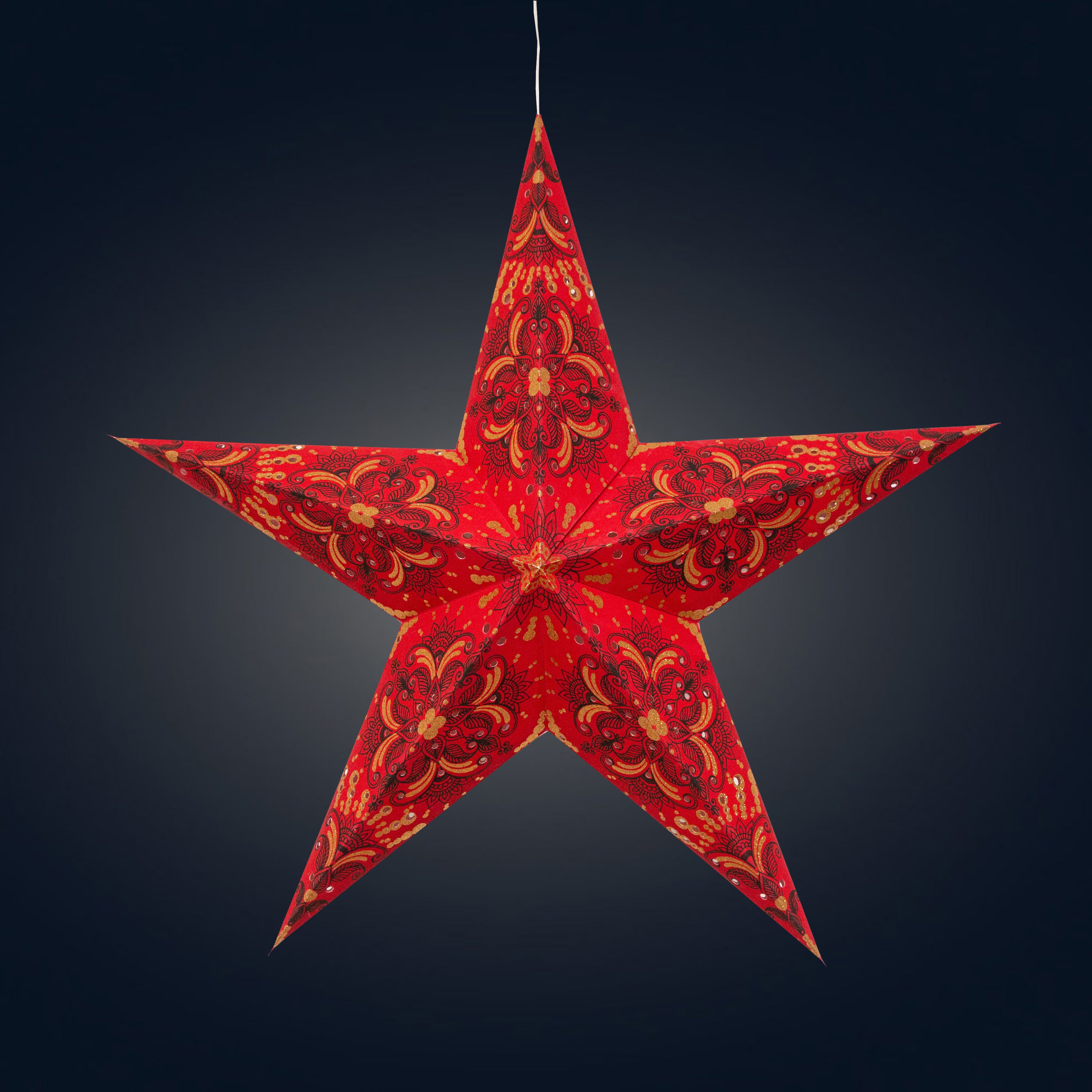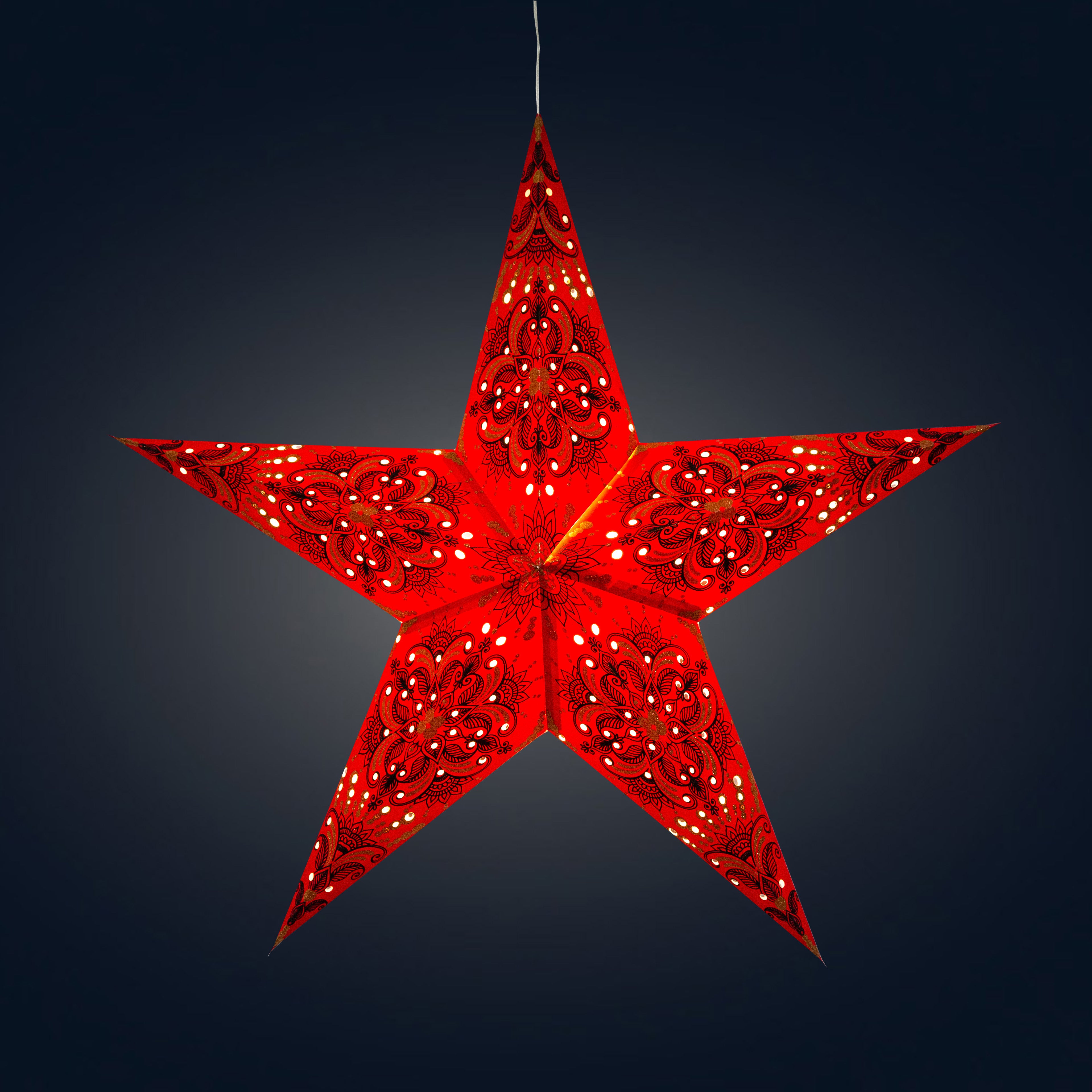 Each Star is handmade in India and assembled here in New York, USA. Each star has been checked for quality and comes pre-wired with a clear 12-ft cable with on/off switch, an energy saving LED bulb and a 5V AC adapter.