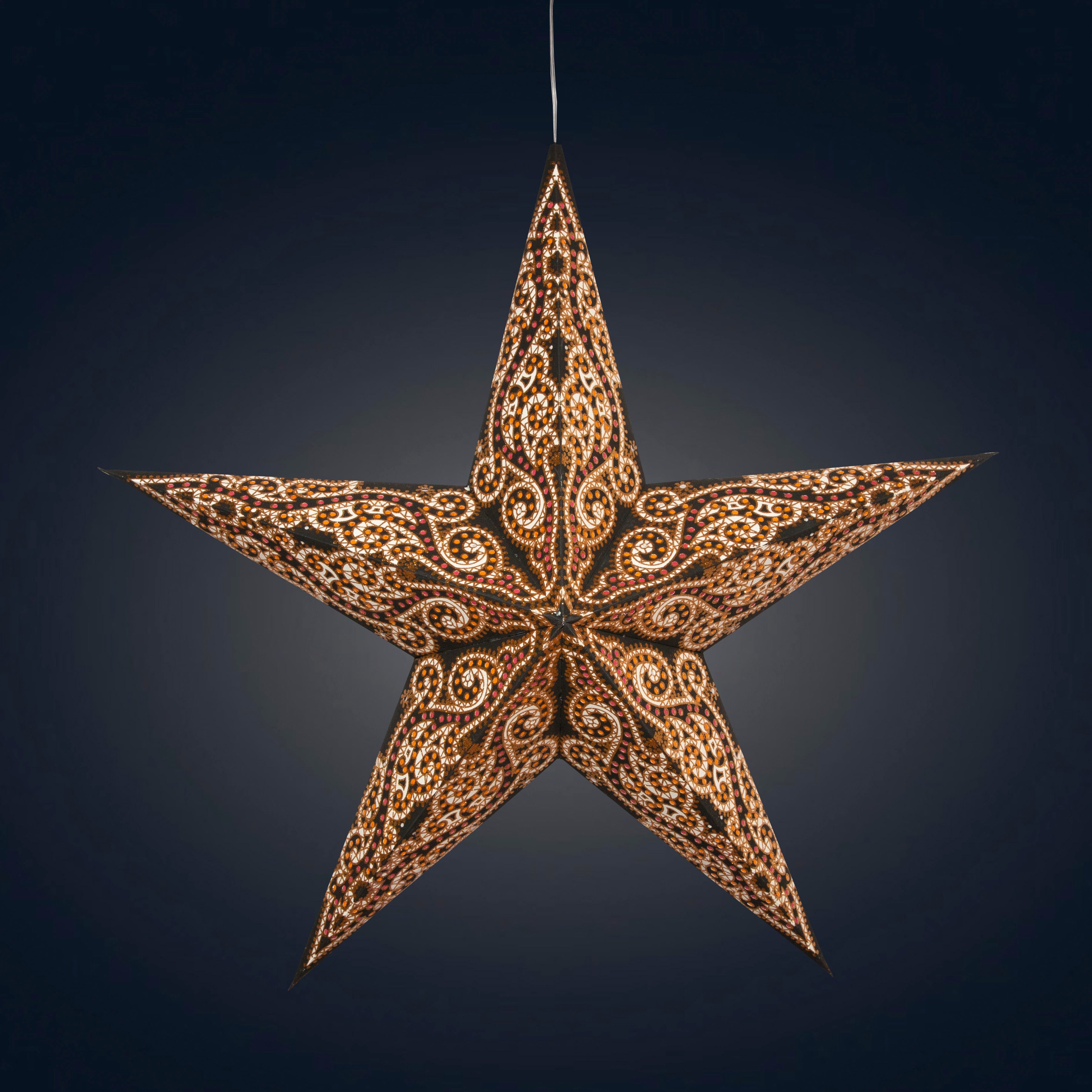 Each Star is handmade in India and assembled here in New York, USA. Each star has been checked for quality and comes pre-wired with a clear 12-ft cable with on/off switch, an energy saving LED bulb and a 5V AC adapter.