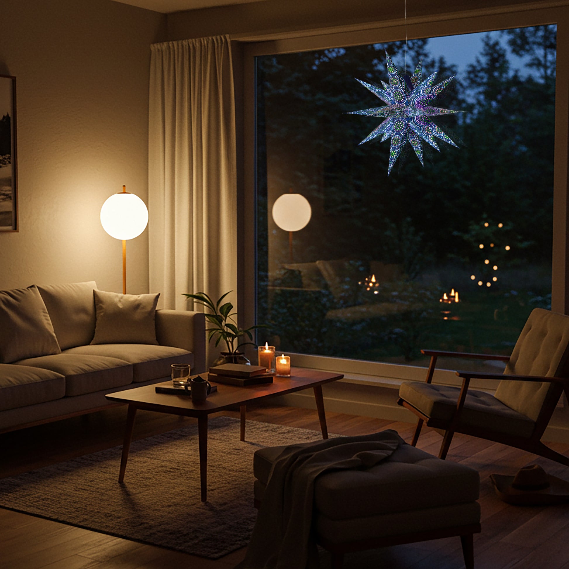 Artschatz Star Lights stand out from all the rest because our stars are the only ones that hang symmetrically with the tip pointing up, (they hang like a traditional “Protective” or “Luck” bringing star).