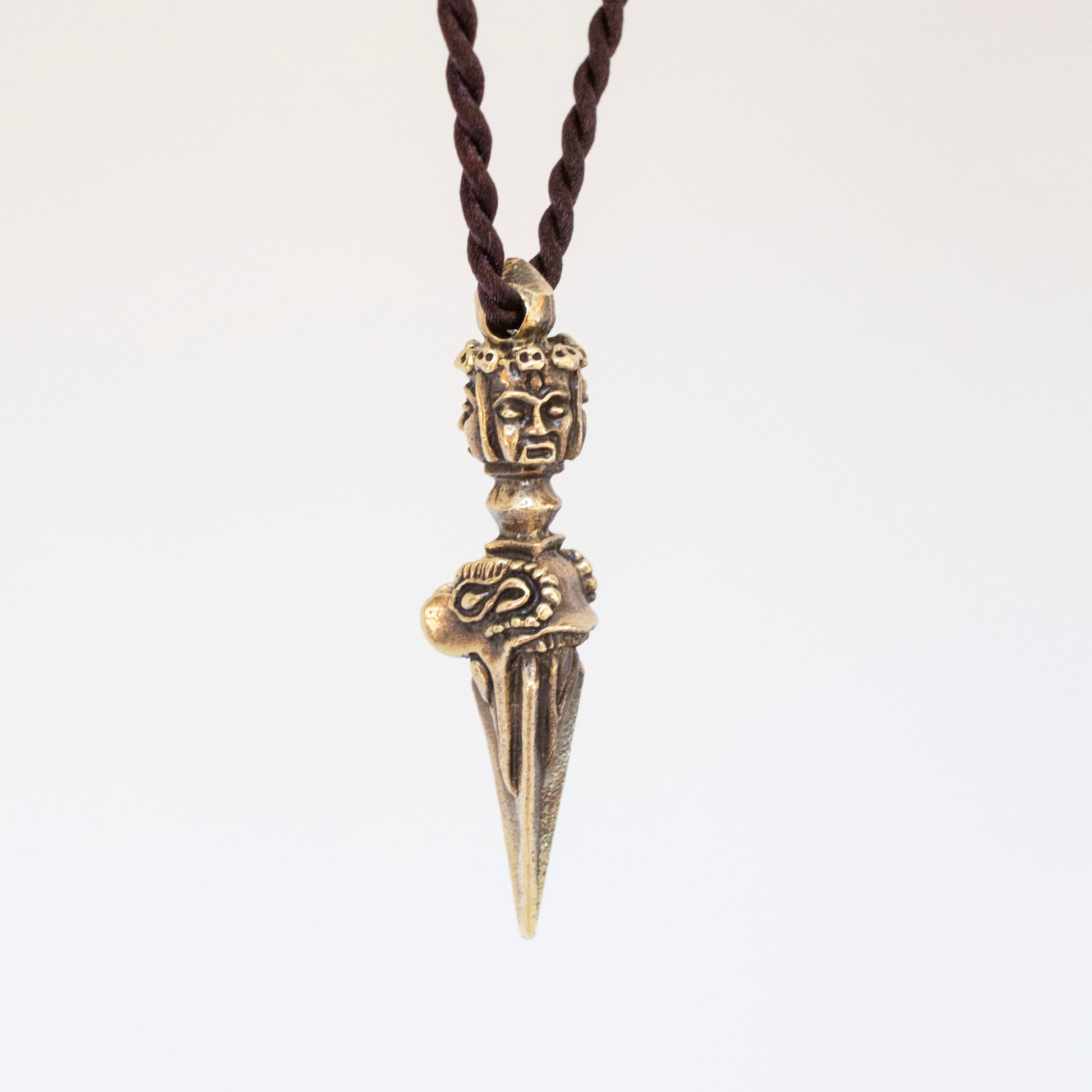 Kila Phurba Dagger with Three Buddha Heads Brass Pendant Necklace
