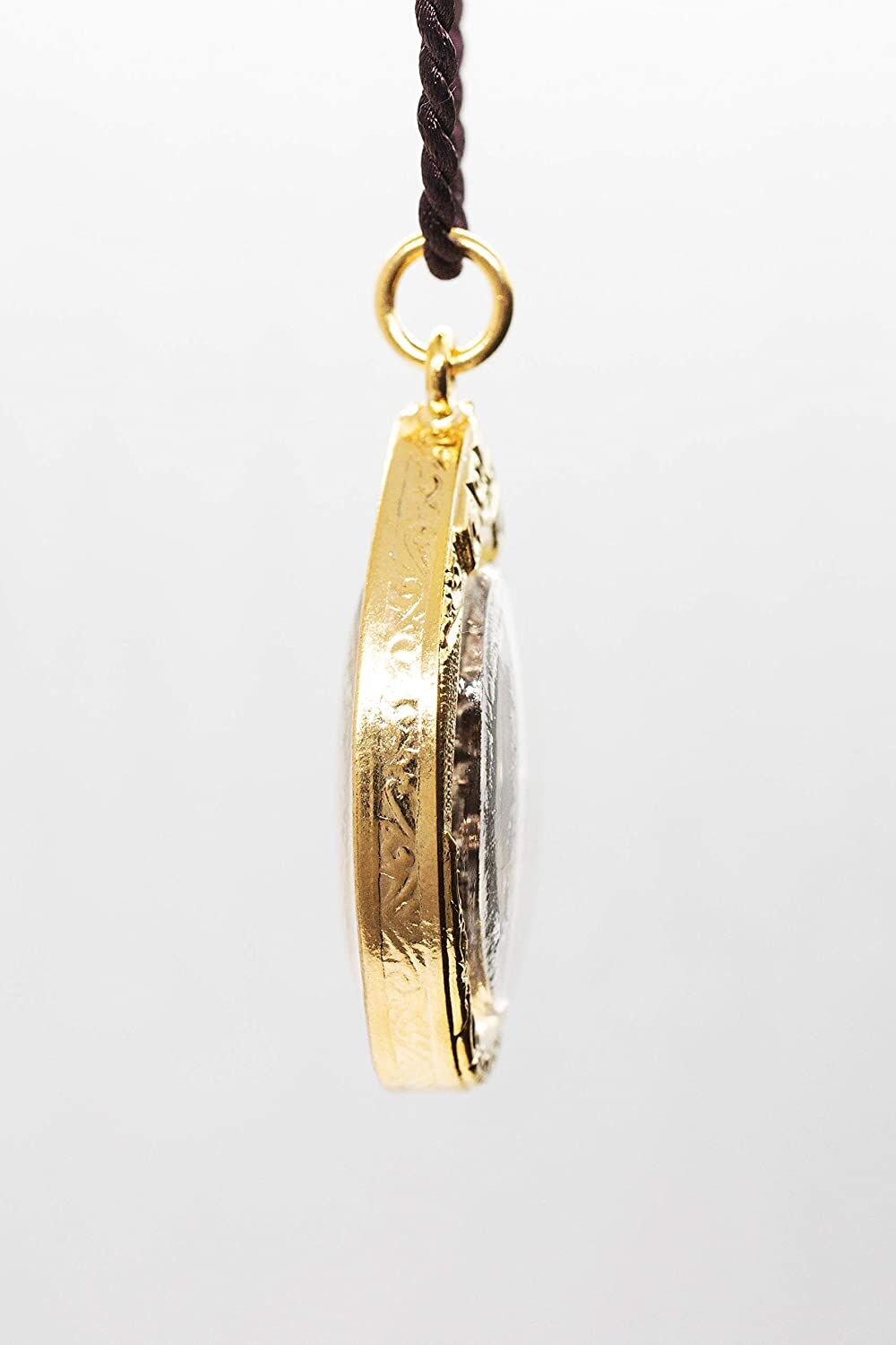 Comes with a ≈ 24" inch brown fabric necklace