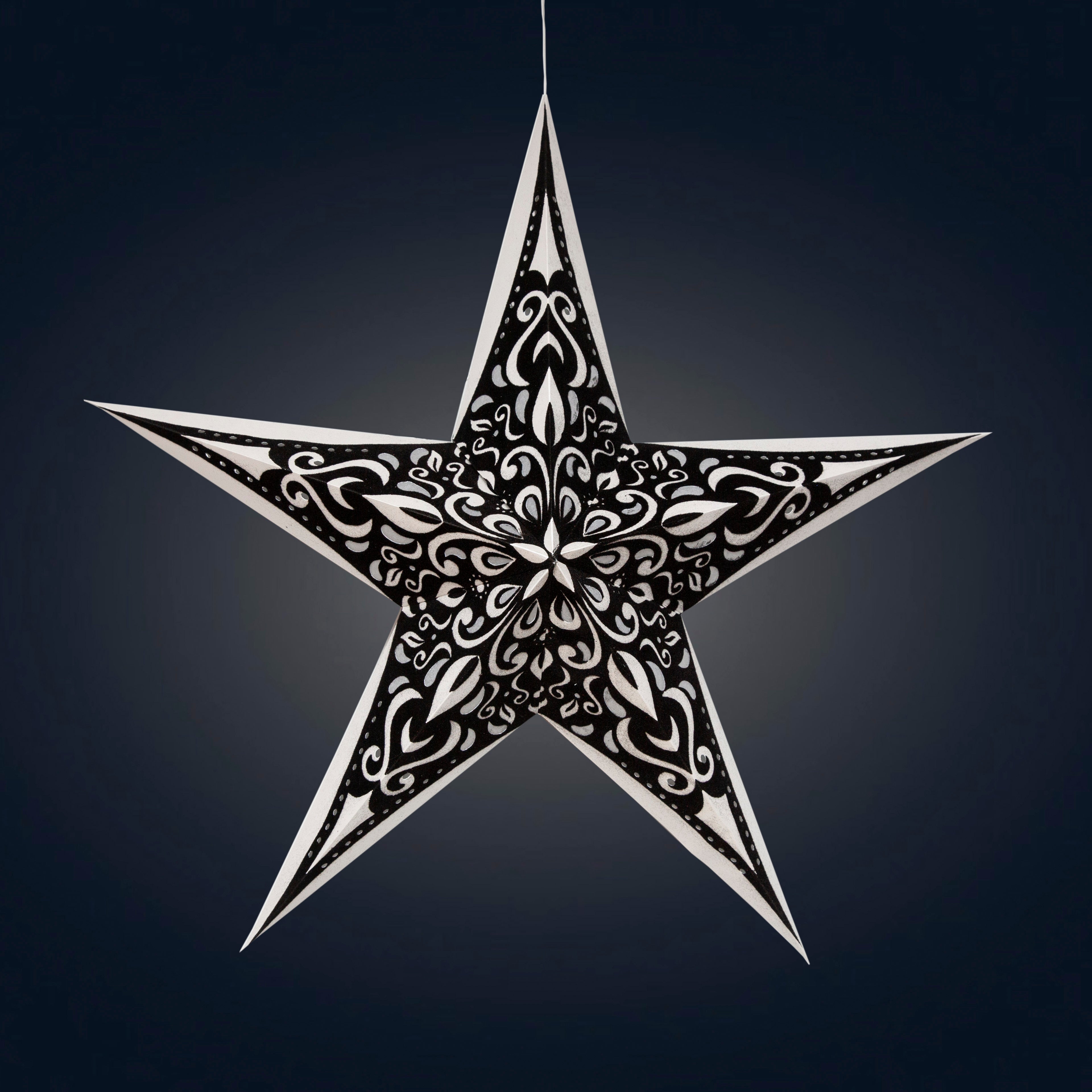 A star of high contrast, its graphic depth comes from luminous pearl paper and rich black velvet designs.Each star features a slim cable, energy-efficient LED bulb, 5V USB AC adapter, and a unique magnetic closure system for easy, secure assembly.