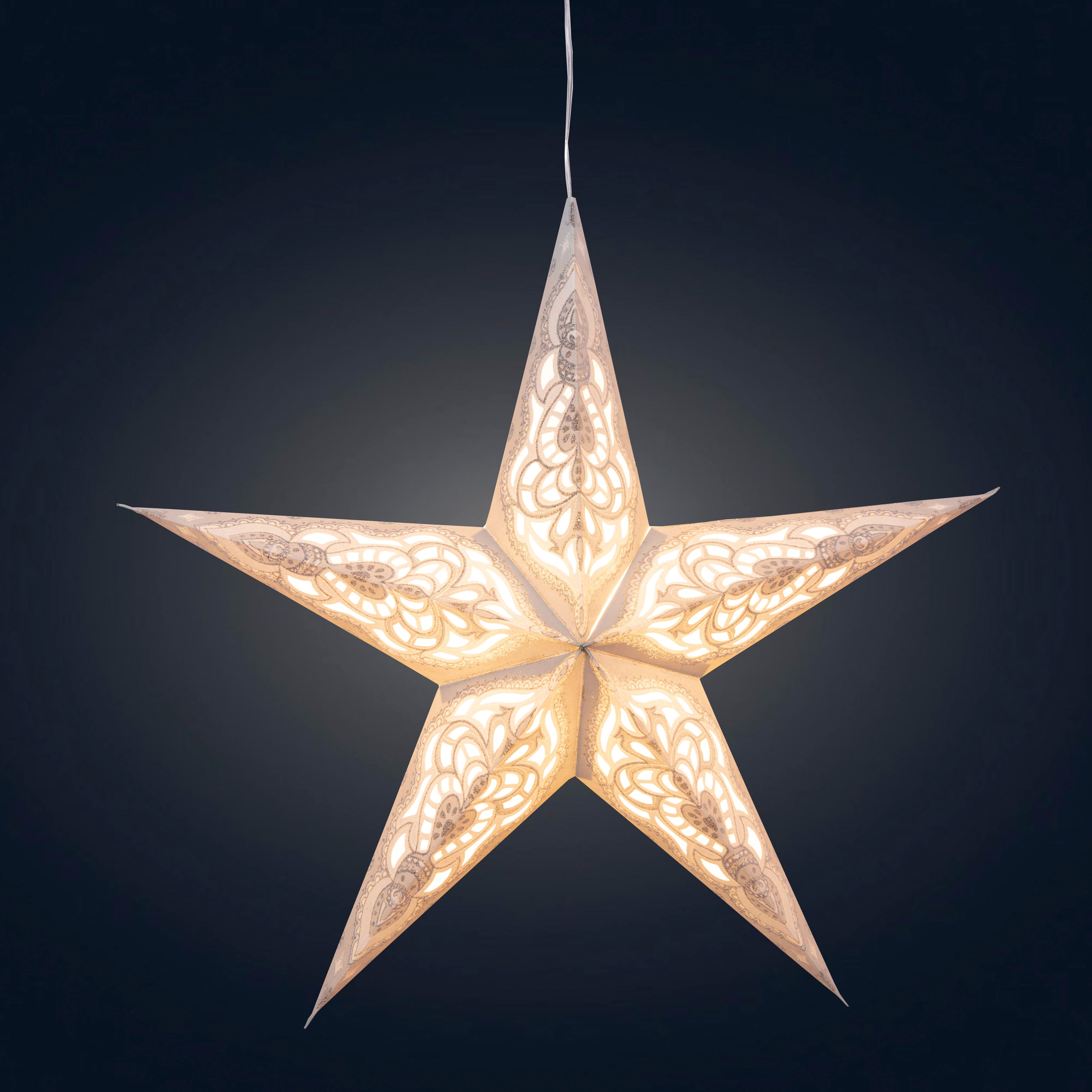 Each Star is handmade in India and assembled here in New York, USA. Each star has been checked for quality and comes pre-wired with a clear 12-ft cable with on/off switch, an energy saving LED bulb and a 5V AC adapter.