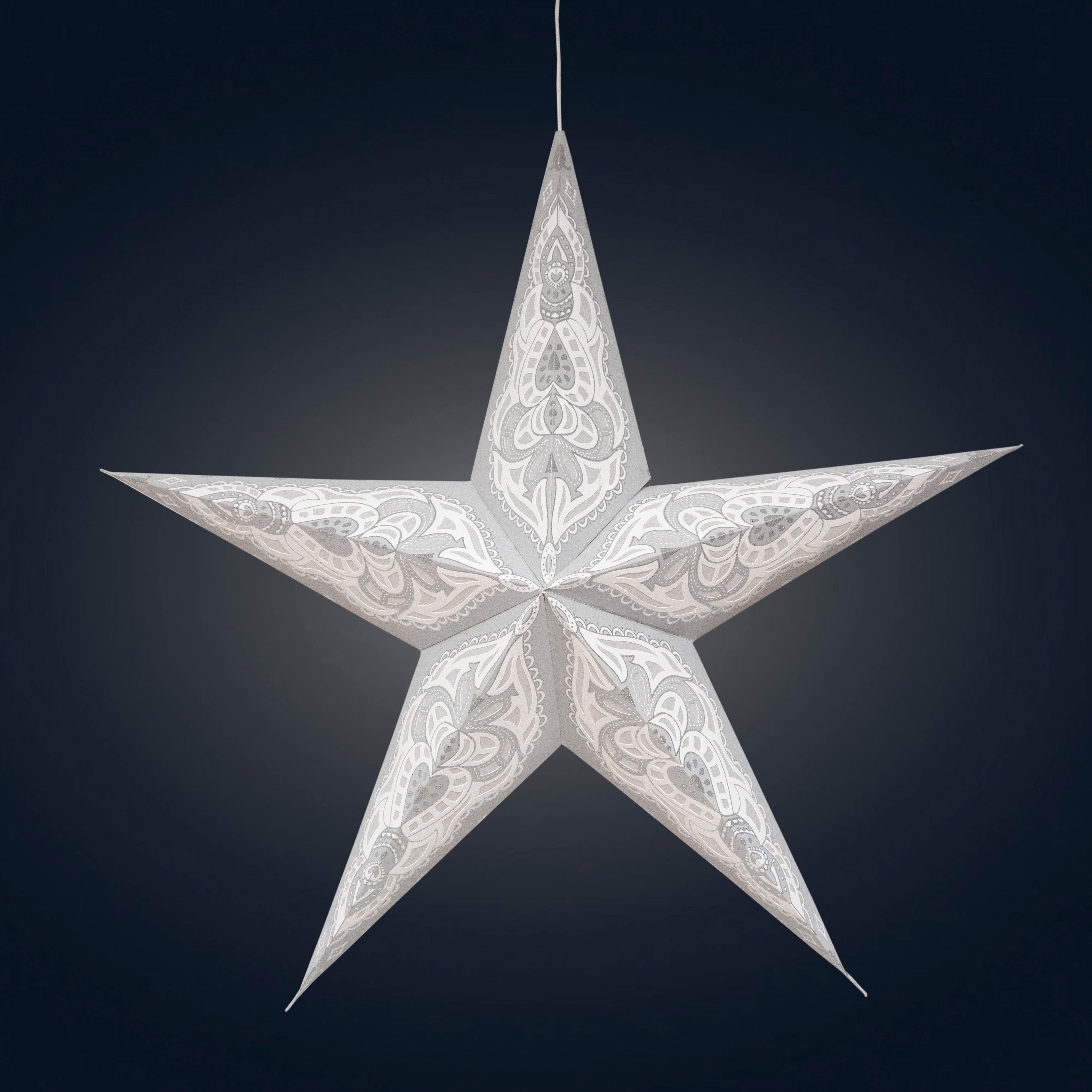 Each Star is handmade in India and assembled here in New York, USA. Each star has been checked for quality and comes pre-wired with a clear 12-ft cable with on/off switch, an energy saving LED bulb and a 5V AC adapter.