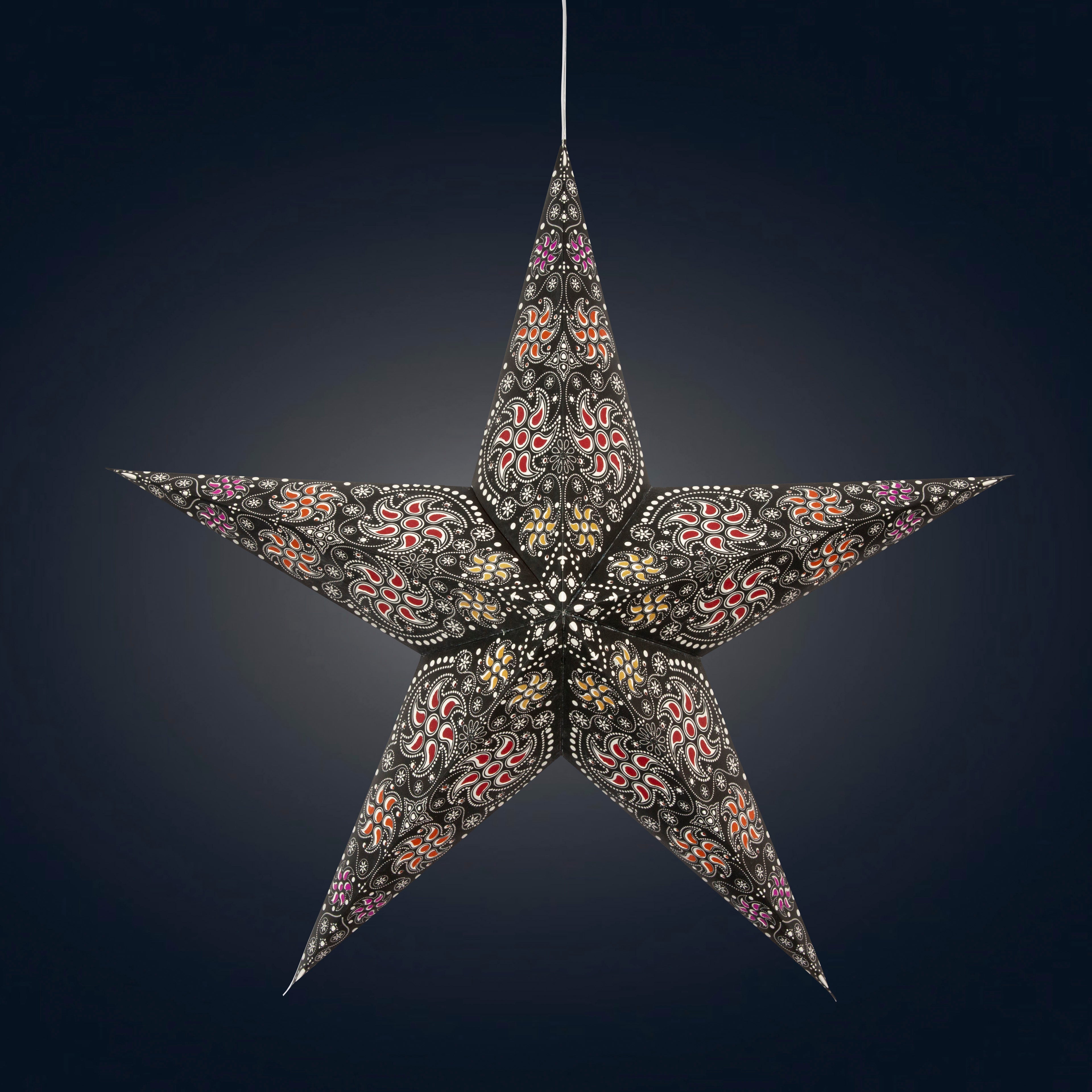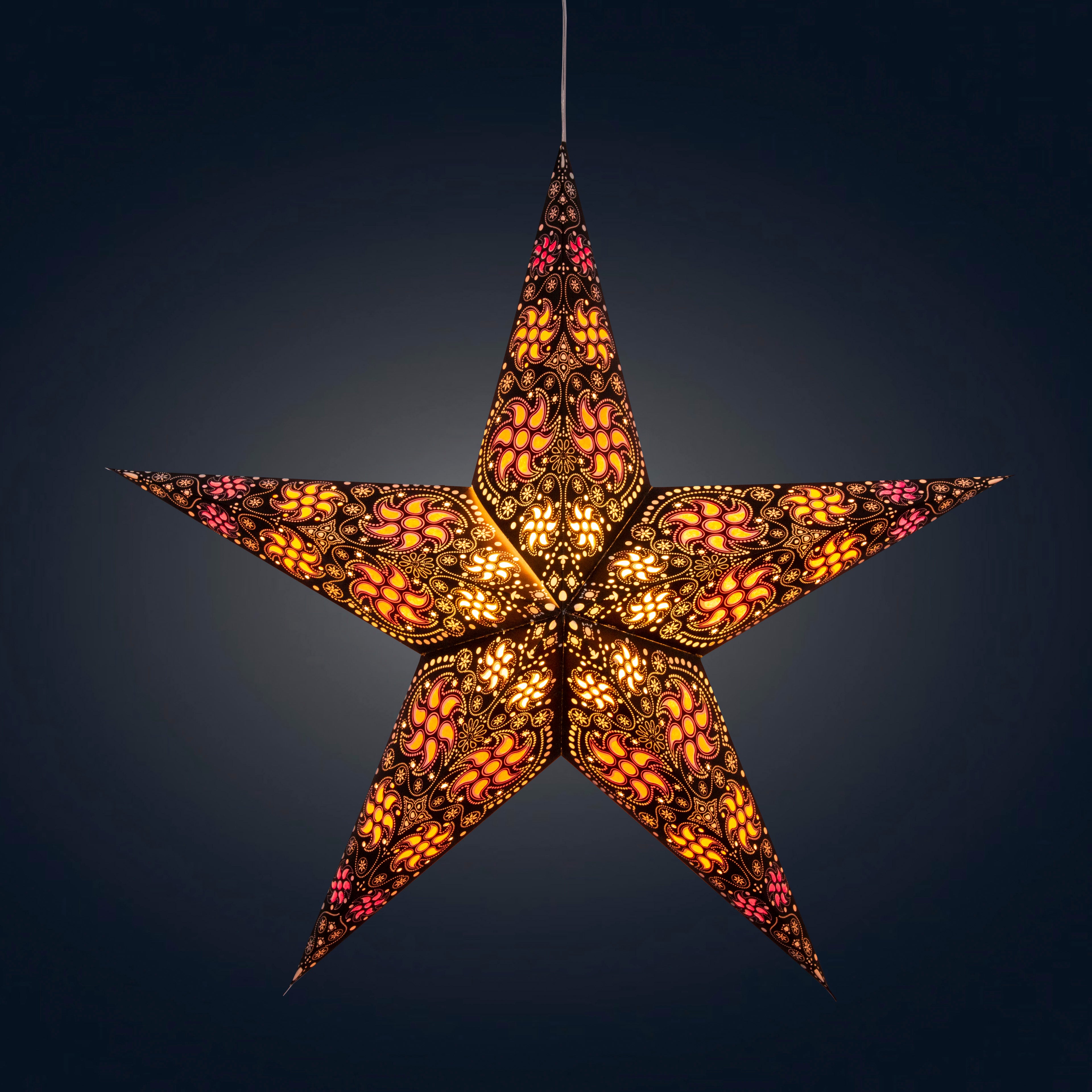 Each Star is handmade in India and assembled here in New York, USA. Each star has been checked for quality and comes pre-wired with a clear 12-ft cable with on/off switch, an energy saving LED bulb and a 5V AC adapter.