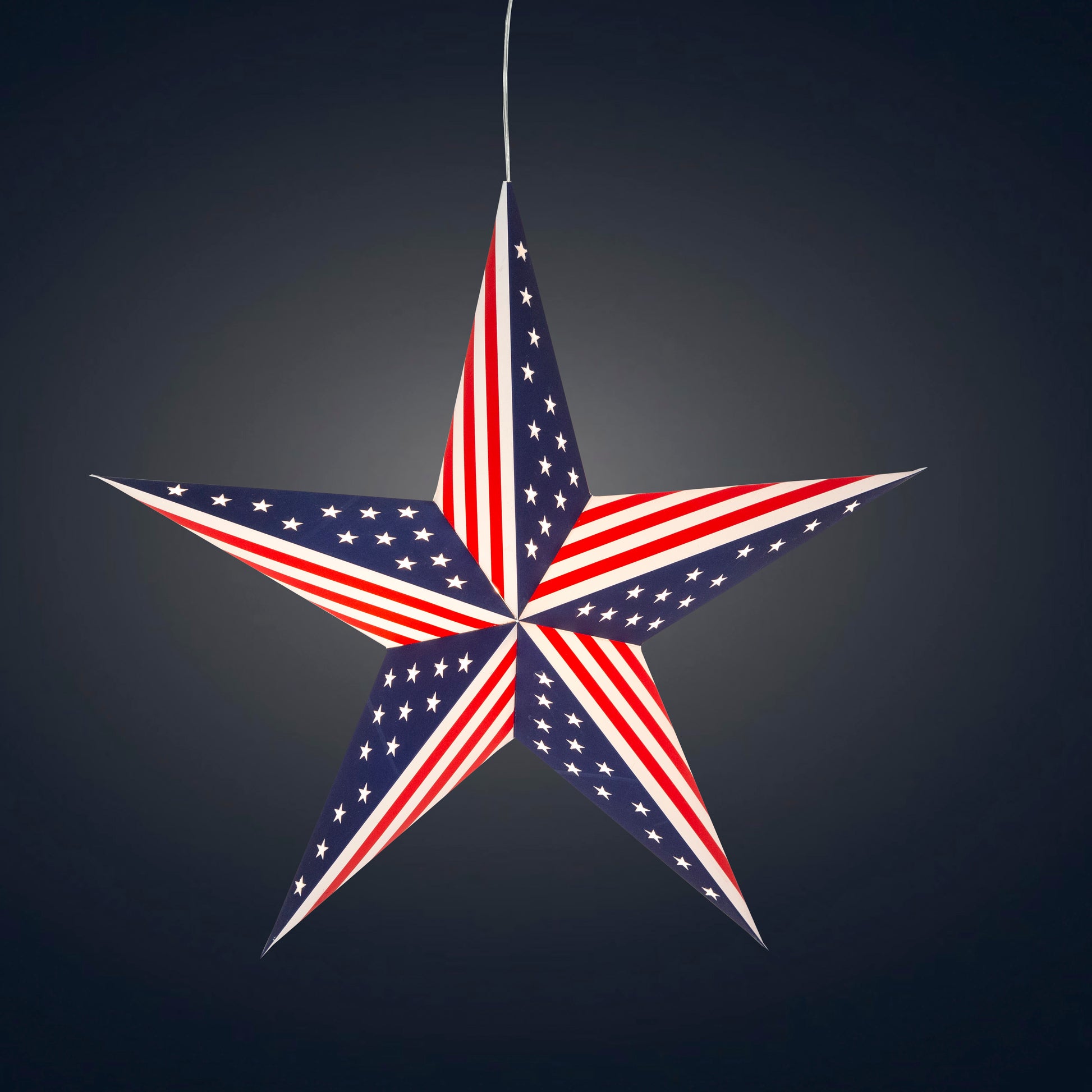 A bold red, white, and blue 5-point star inspired by the American flag—celebrating freedom, pride, and togetherness.