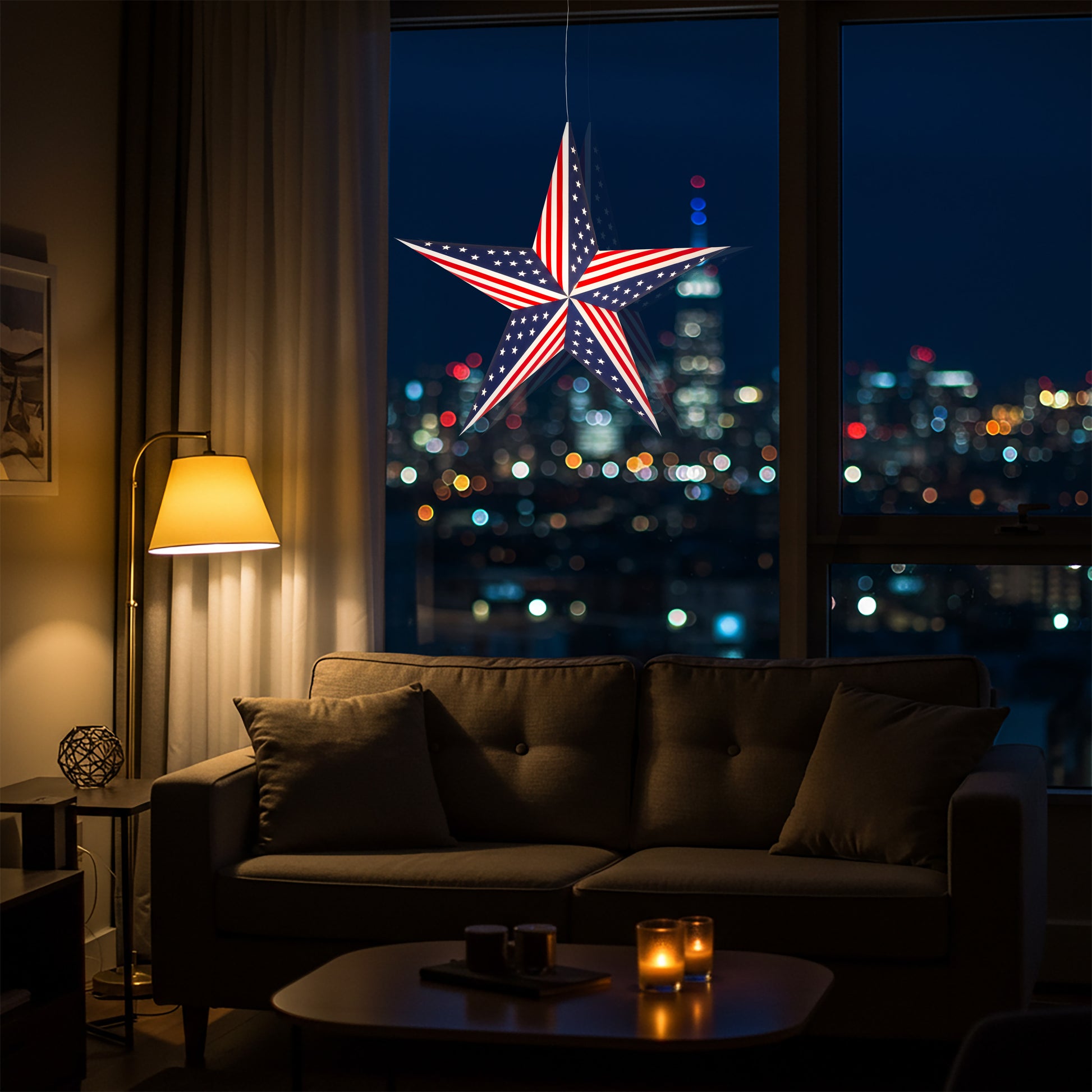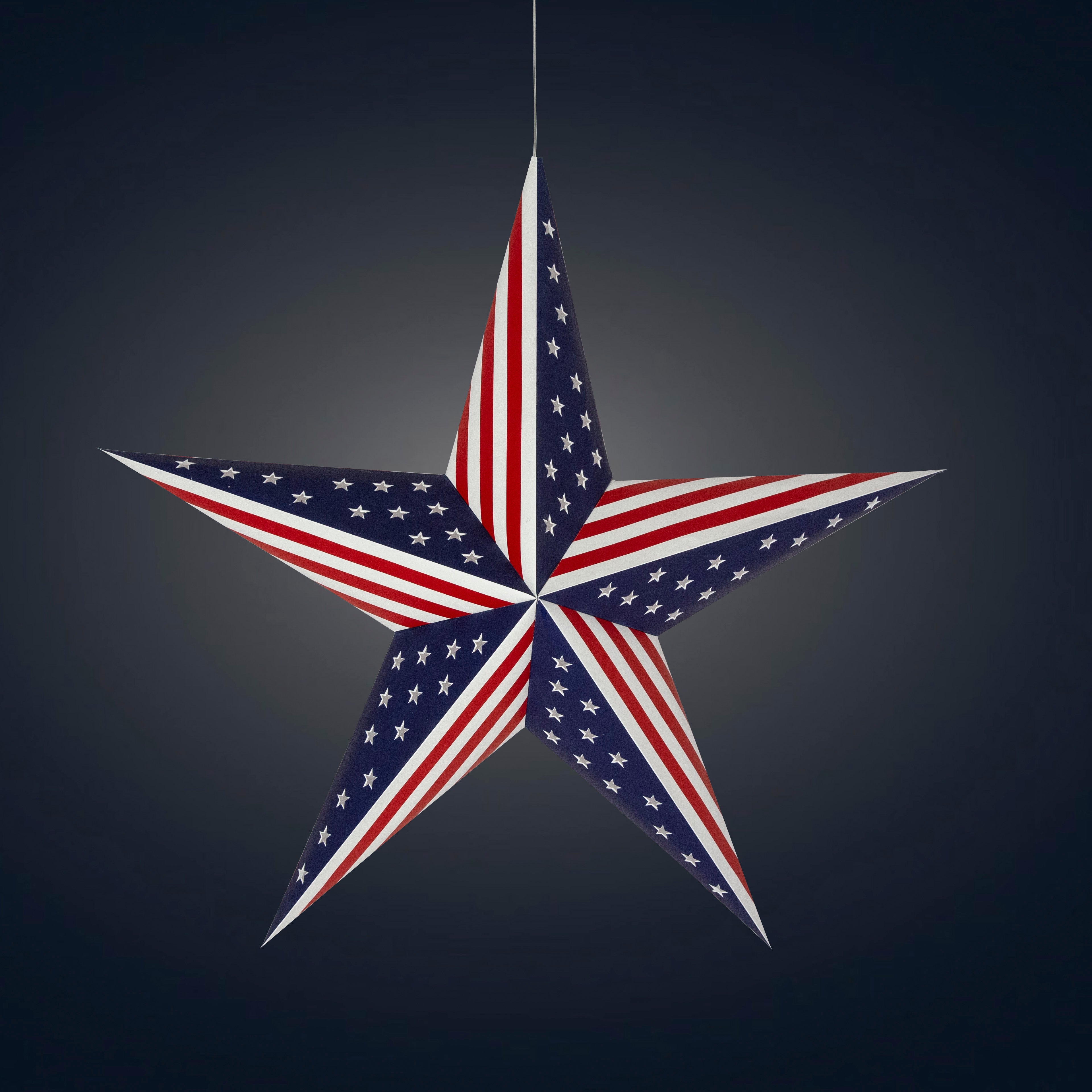 A bold red, white, and blue 5-point star inspired by the American flag—celebrating freedom, pride, and togetherness.