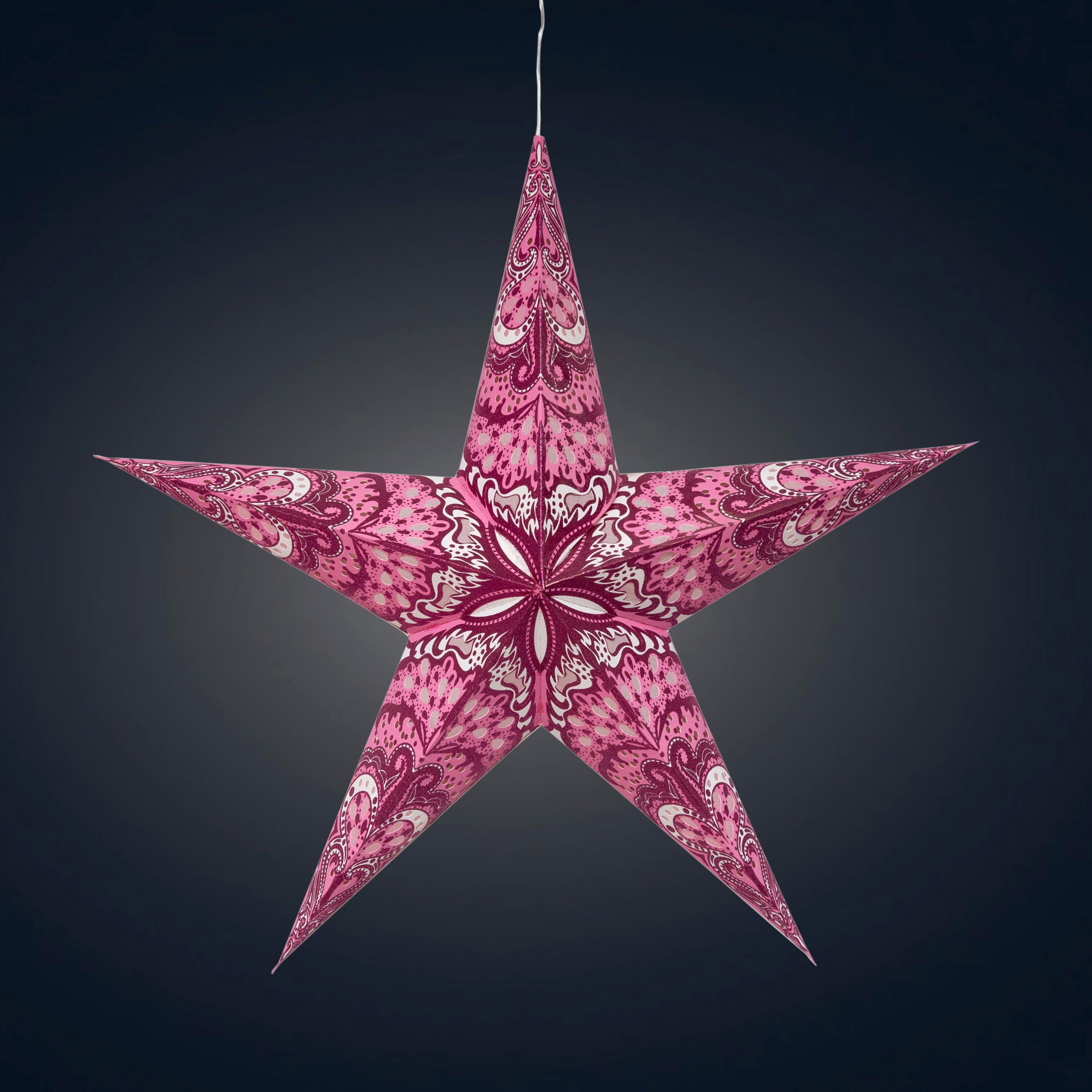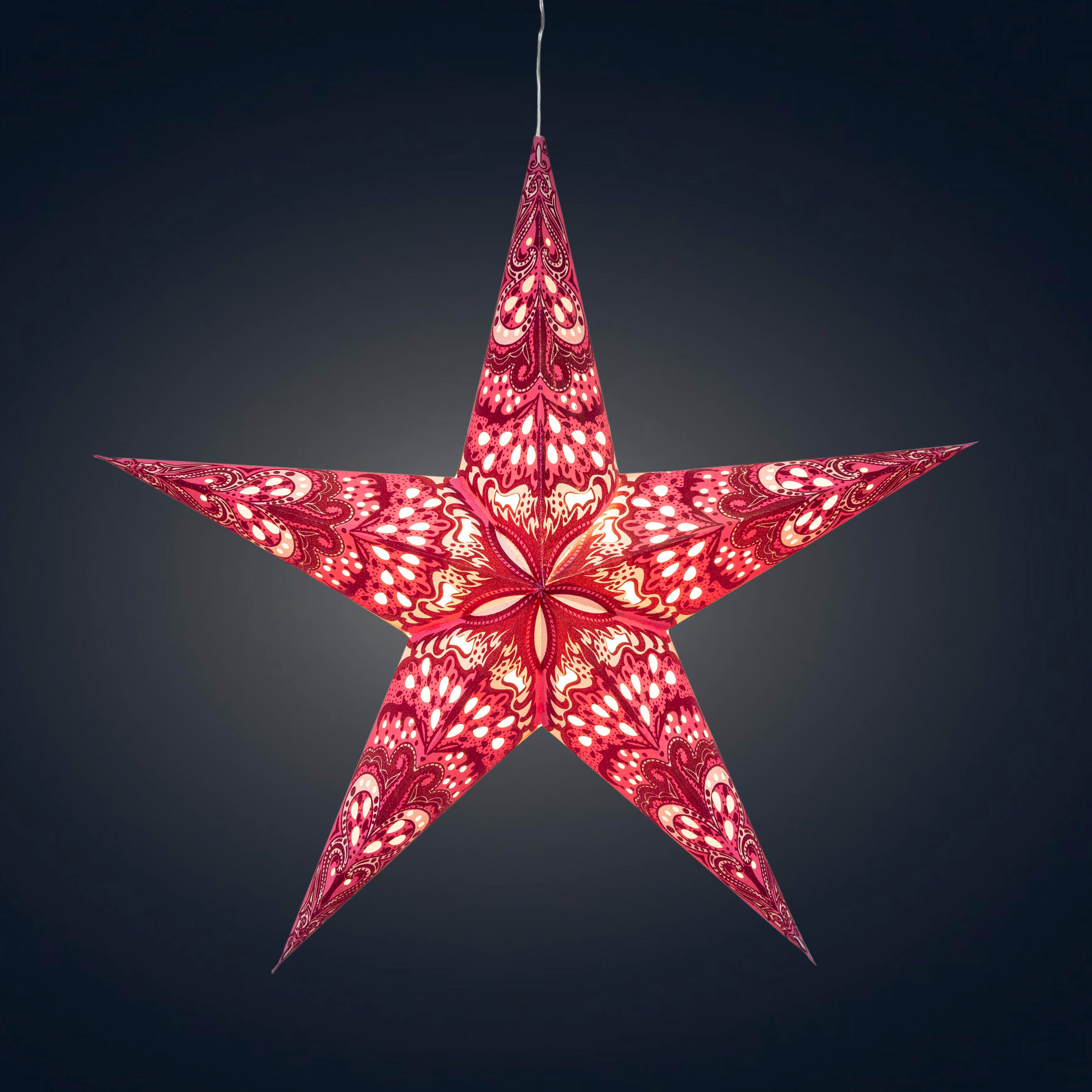 Each handmade paper star comes with a pre-installed clear 12-ft cable, an energy saving LED bulb and a 5V AC Adapter.